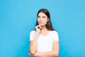 image of a thinking young woman depicting replacing only just the outside AC unit