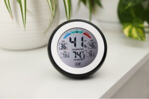 hygrometer measuring humidity and temperature indoors